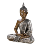 the Buddha wears a beautiful, silver robe and